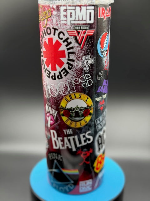 Rock out with this awesome rock and roll bands tumbler! Featuring iconic rock band imagery and designs, this 20 oz stainless steel tumbler is perfect for music lovers and anyone who lives for rock and roll.